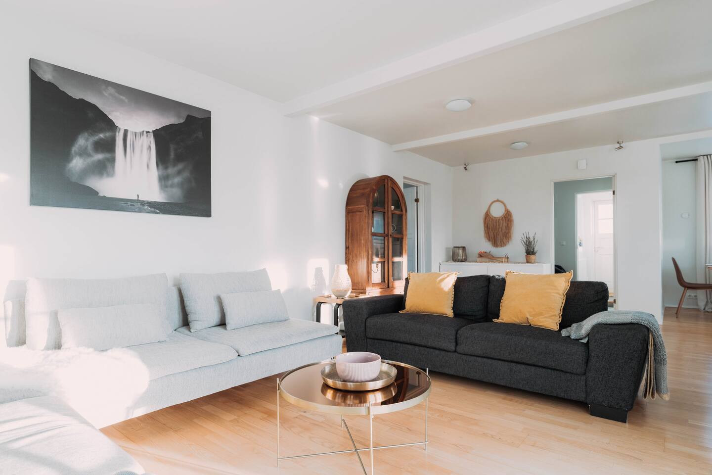 Iceland places a strong emphasis on sustainability. The home is heated with under-floor geothermal energy, and electricity is generated from clean hydro power. Occasionally the set point on the under-floor heating may need to be adjusted. If this happens, send us a message and we will take care of that as soon as possible. Recycling is standard practice here: Recycling (blue lid): plastic, cardboard, paper Trash: under the sink (grey bin outside at departure) Compost: under the sink in a compostable bag (brown bin outside at departure) Please empty trash, recycling, and compost at checkout. For transparency and safety: Exterior security cameras are installed at all entry points to the home. They record motion outdoors only and are not used inside the home.