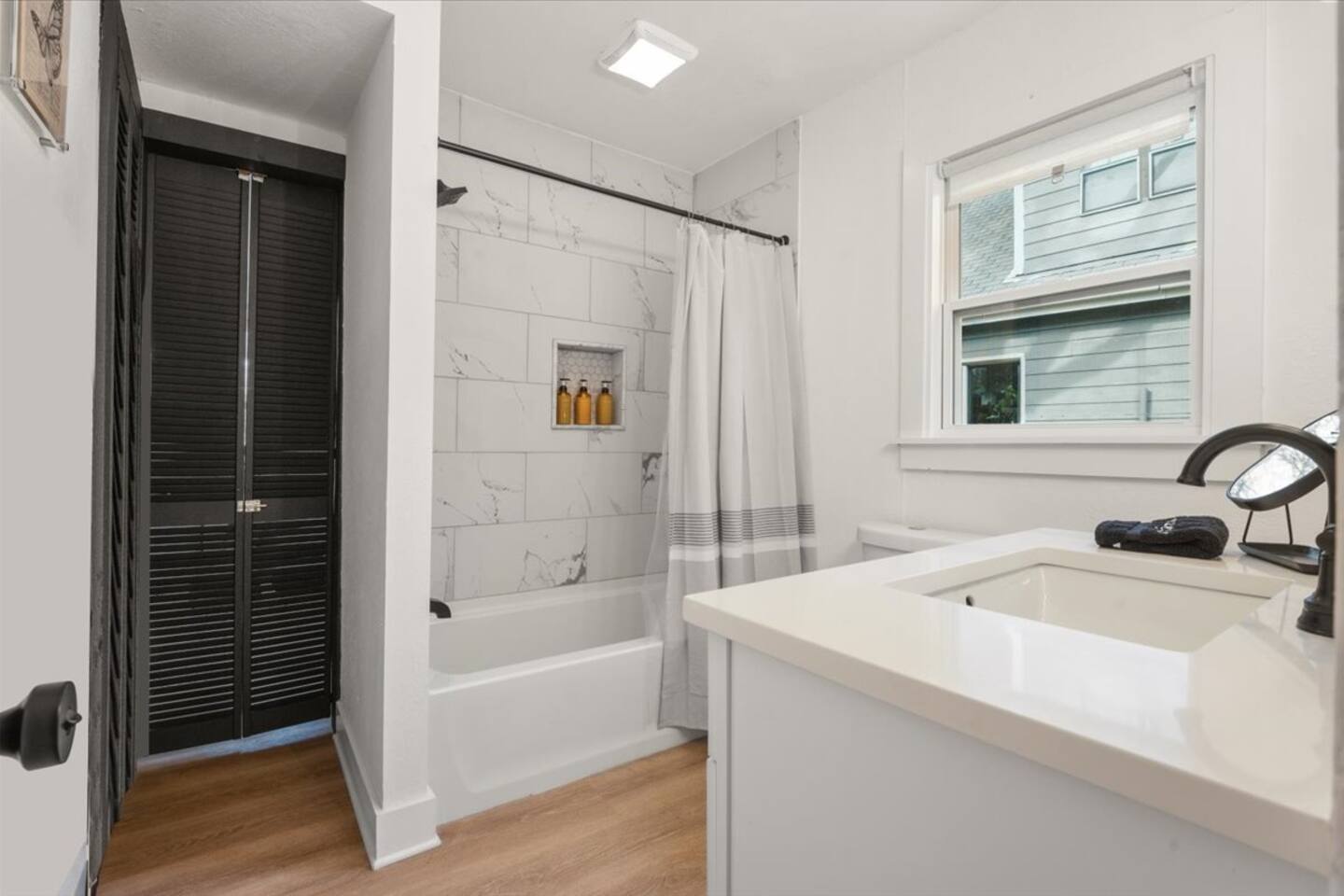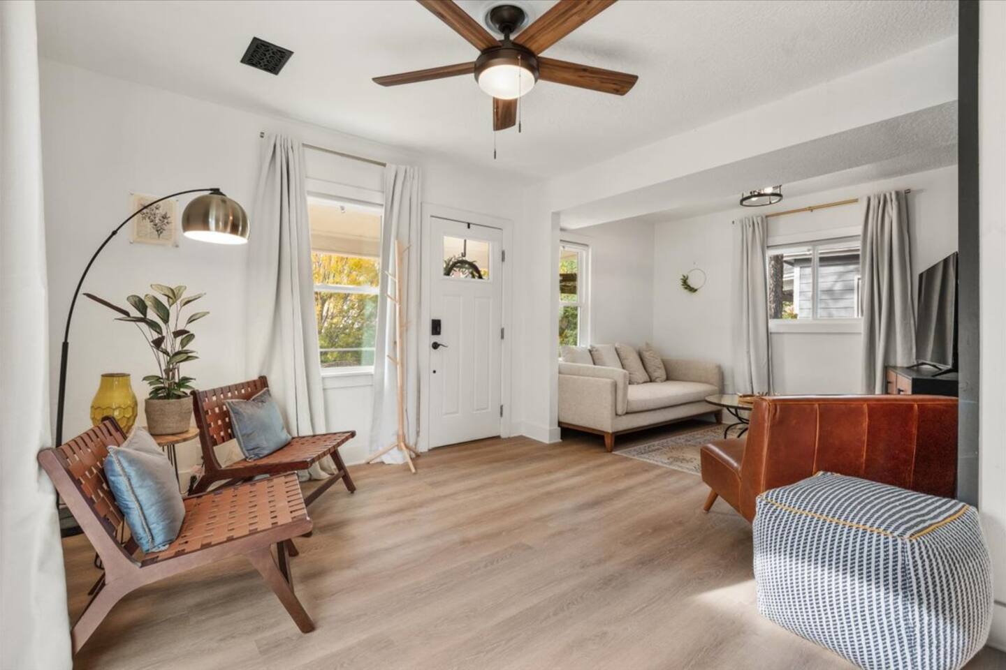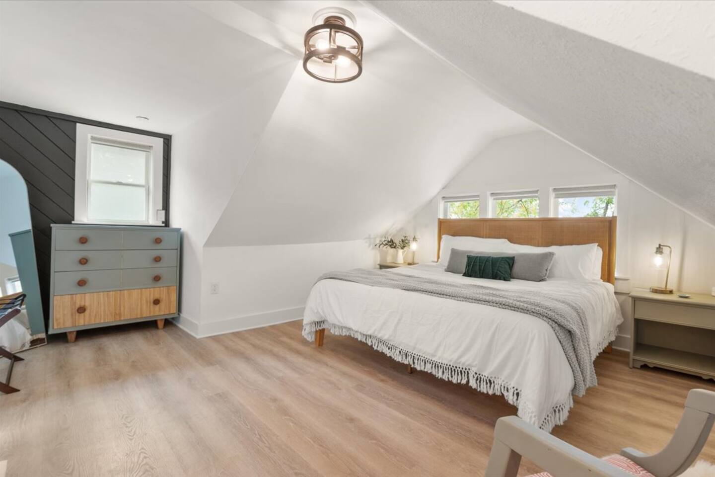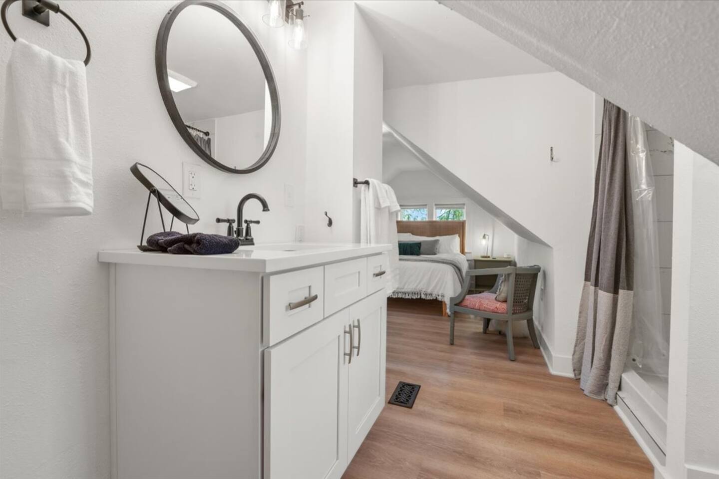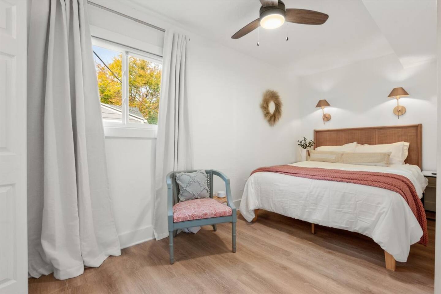 The Space Welcome to The Linden House, a calm and thoughtfully designed retreat with Scandinavian-inspired details throughout. The living area features warm textures, soft neutrals, and comfortable seating perfect for relaxing or streaming your favorite shows on the 58" HDTV with Roku. A full dining table sits just off the living space, ideal for meals, laptop work, or slow mornings with coffee. Kitchen The updated kitchen includes: LG refrigerator, LG range, and LG oven Cookware, utensils, and dinnerware Pour-over, French press, and drip coffee options Oil, salt, pepper, and basic seasonings Everything you need for simple meals or longer stays is here. Bedrooms Main Level: A cozy queen bedroom with soft linens, room-darkening shades, and thoughtful storage. Upper-Level Loft Suite: An airy retreat with a king bed, abundant natural light, and a private full bathroom with tub/shower. Note: The loft suite has an open layout without a door, which may matter to guests seeking complete sleeping privacy. Outdoor Space A private backyard offers a quiet place to unwind, dine outside, or enjoy easy mornings in the shade of the trees. Comfort & Practical Details Fast Wi-Fi throughout the home Central heating and air-conditioning In-home washer and dryer Easy, free street parking Keypad smart lock for seamless self-check-in Good to Know This 1920s home features an exterior flight of stairs to the entry and an interior staircase to the loft suite. Due to these features—and the open loft layout—the home may not be ideal for young children or guests with mobility limitations. The layout, design, and amenities make The Linden House especially well-suited for couples, solo travelers, and longer stays. Other Details Bedding configuration: 1 king (upstairs loft) + 1 queen (main level) Shampoo, conditioner, and body soap provided The entire home and private backyard are yours during your stay.